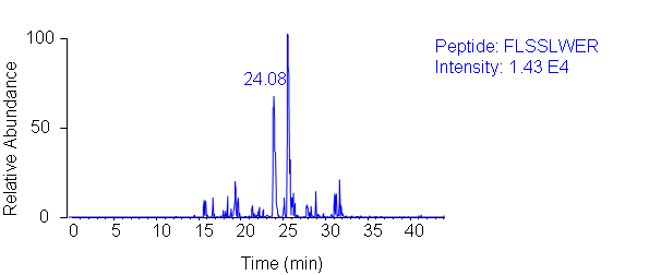 Experiment Description: Cells from line 8226 were lysed in RIPA buffer. The equivalent of 50,000 cells were loaded onto an SDS gel. The protein of interest was excised and ingel digestion with trypsin was performed after reduction and alkylation with TCEP and IAA. 1/4 of the resulting digest was then analyzed on a Thermo Scientific TSQ mass spectrometer.