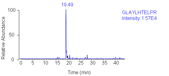 Experiment Description: Cells from colon caner line HCT 116 were lysed in 8M urea/ 100mM ammonium bicarbonate buffer on ice. The equivalent of 60,000 cells were loaded onto a SDS gel. The protein of interest was excised and ingel digestion with trypsin was performed after reduction and alkylation with TCEP and IAA. 1/6 of the resulting digest was then analyzed on a Thermo Scientific TSQ mass spectrometer.