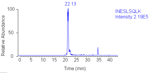 Experiment Description: Cells from colon caner line HCT 116 were lysed in 8M urea/ 100mM ammonium bicarbonate buffer on ice. The equivalent of 100,000 cells were loaded onto a SDS gel. The protein of interest was excised and ingel digestion with trypsin was performed after reduction and alkylation with TCEP and IAA. 1/4 of the resulting digest was then analyzed on a Thermo Scientific TSQ mass spectrometer.