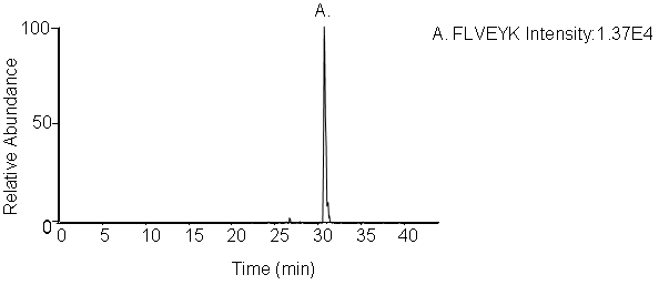 Peptides screening: Peptides and transitions for analysis were selected using a predictive peptide program. The results were screened for those with the highest specificity and the most intense transitions.