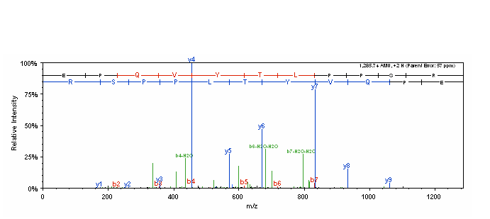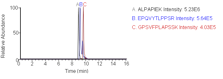 Sample Preparation: Human Serum was digested overnight with trypsin after reduction and alkylation with TCEP and IAA. Sample was then diluted 1:10 for analysis on a Thermo Scientific TSQ mass spectrometer