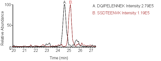Peptides screening: Peptides were selected with a predictive peptide program and then run in LC-MRM for final selection.